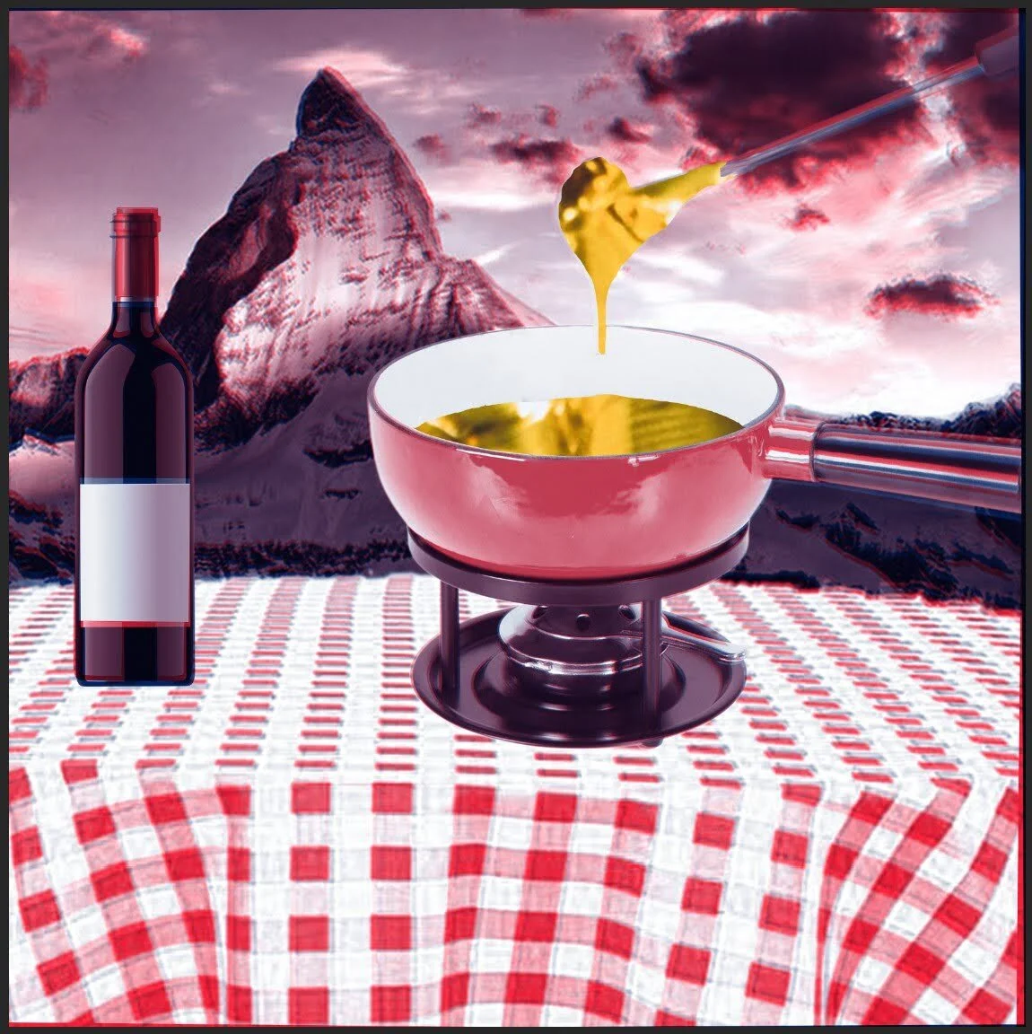 digital mock up simulating riso printing with color overlay, imprecise registration and faked gold foil stamp