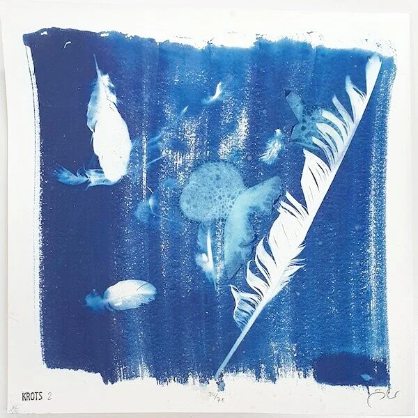 digital mockups. the album title “zu jeder stund ein vogelsang” combines two topics that i chose to try and have present in this series. firstly obviously birds and secondly the aspect of time. picking found bird feathers as the main subject of the images, and the choice of cyanotype as a photographic printing process that uses uv-light exposure that captures the essence of time, covers both these themes.