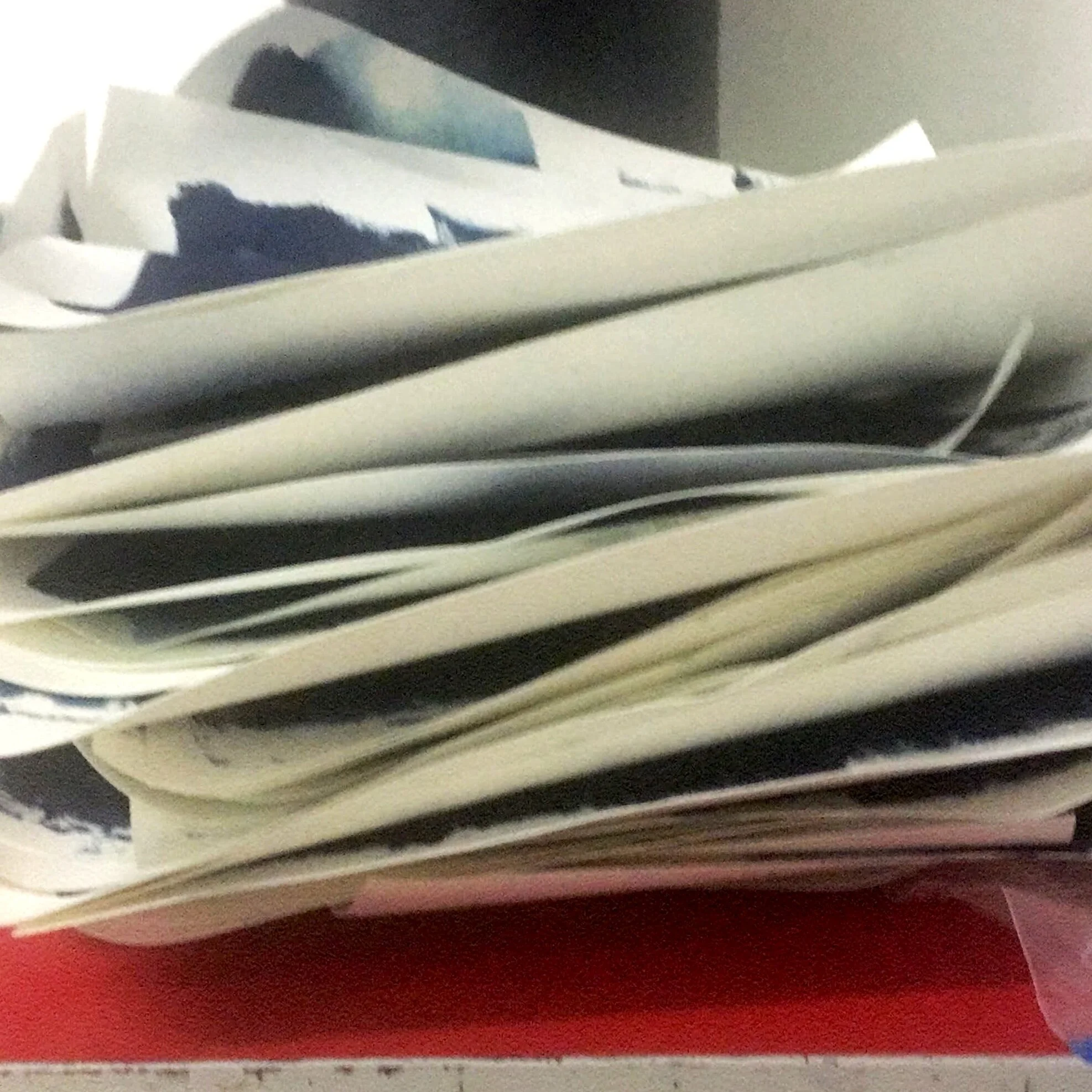 messy pile of prints before being pressed flat